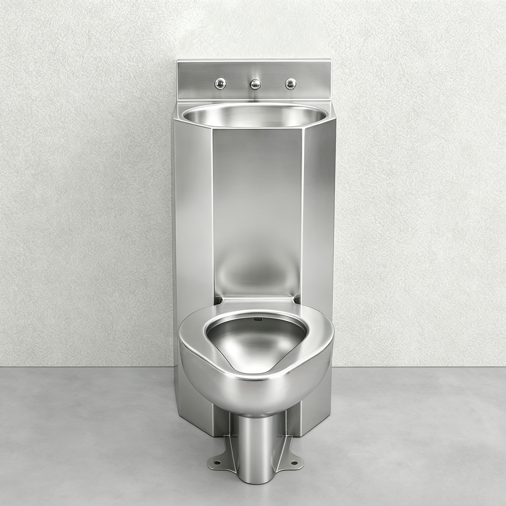 BC-C8555Stainless steel integrated toiletcombination toilet is a floor standing toilet, The upper part is the washbasin, and the lower part is the toilet. The toilet and washbasin are integrated, so there is no need to buy a separate toilet or washbasin, which is convenient and saves space, Stainless steel combination toilets are mainly used in places such as prisons, ships, trains, airplanes, etc