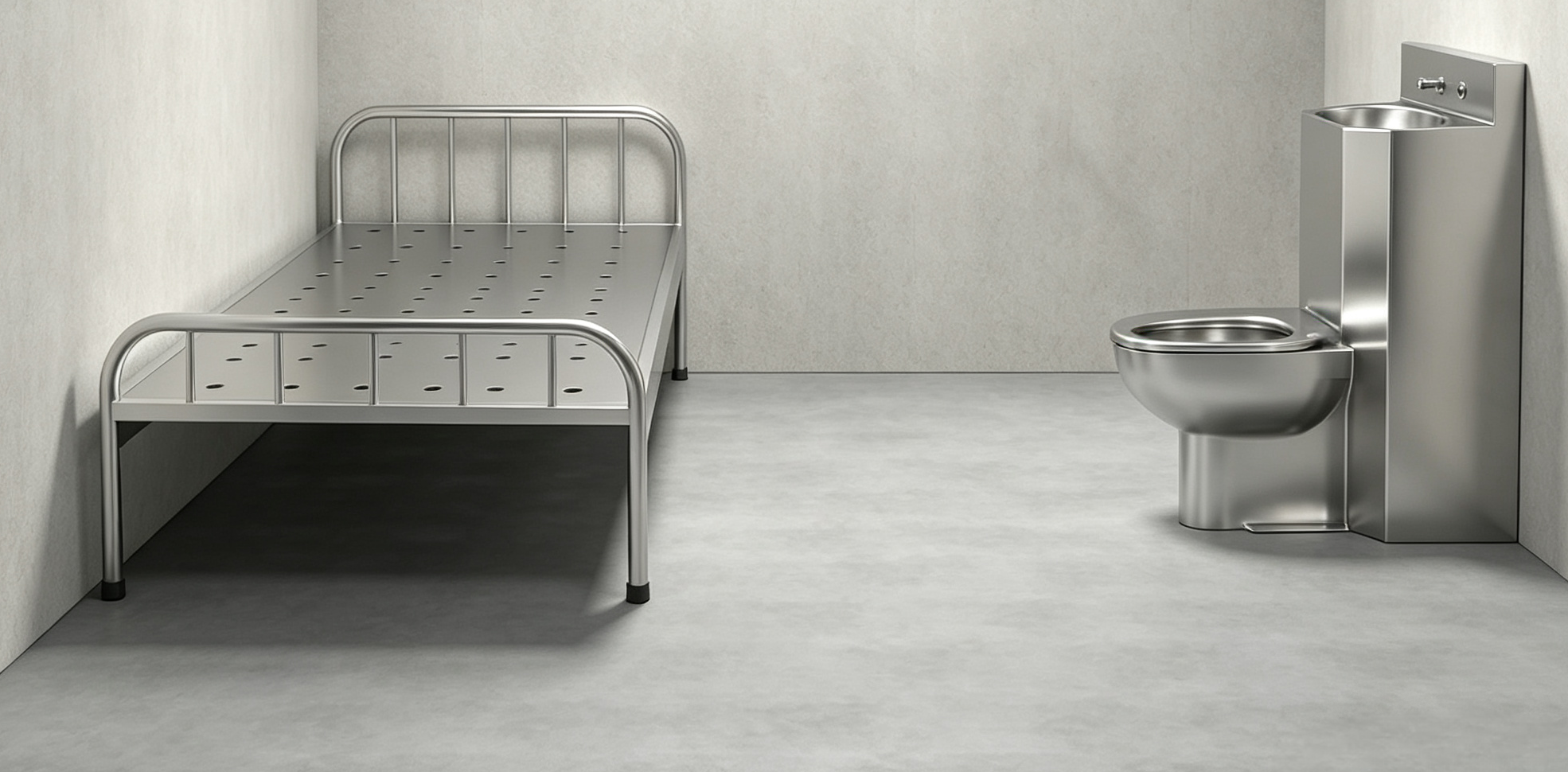 The washbasin above is equipped with a faucet, and both the washbasin and faucet are circular. The edge of the washbasin is designed with a small R angle to prevent prisoners from being bumped and injured.