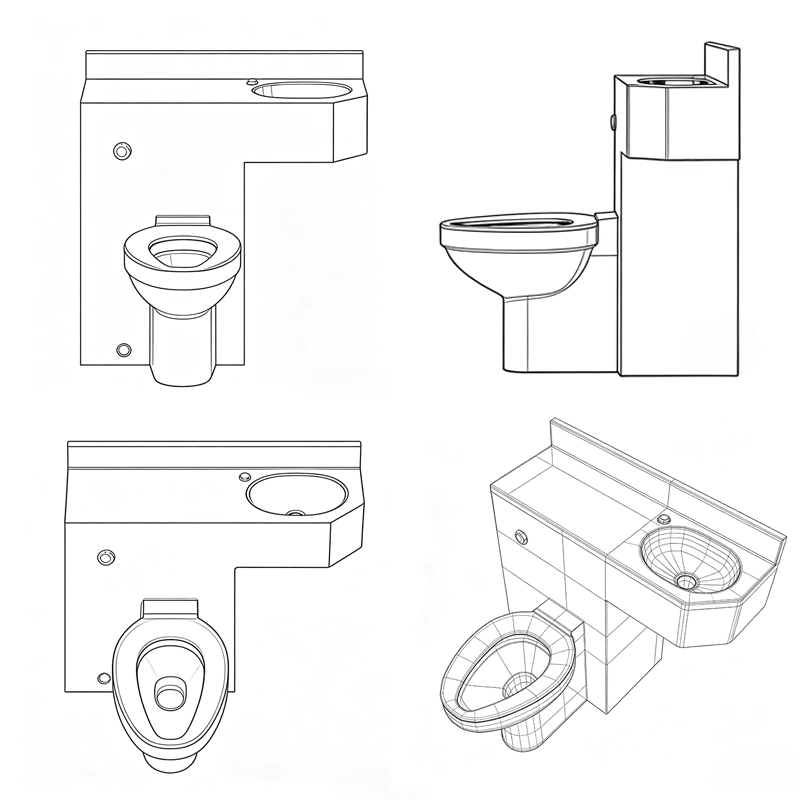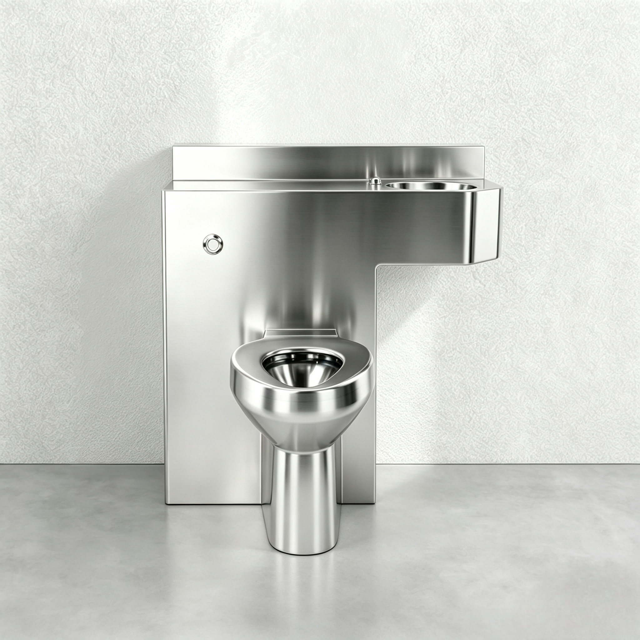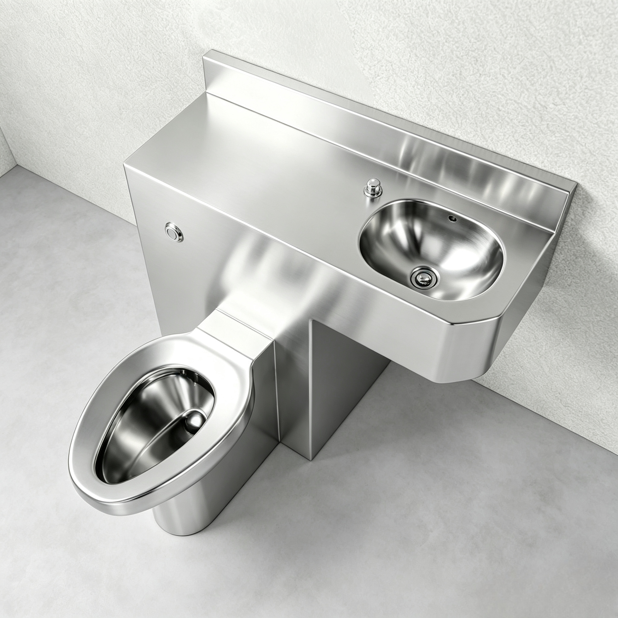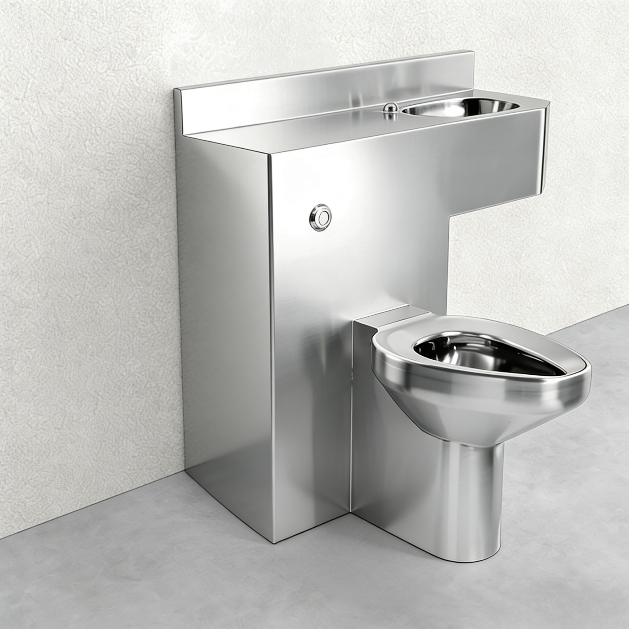 BC-C8561 combination toilet is a floor standing toilet, The upper part is the washbasin, and the lower part is the toilet. The toilet and washbasin are integrated, so there is no need to buy a separate toilet or washbasin, which is convenient and saves space, Stainless steel combination toilets are mainly used in places such as prisons, ships, trains, airplanes, etc