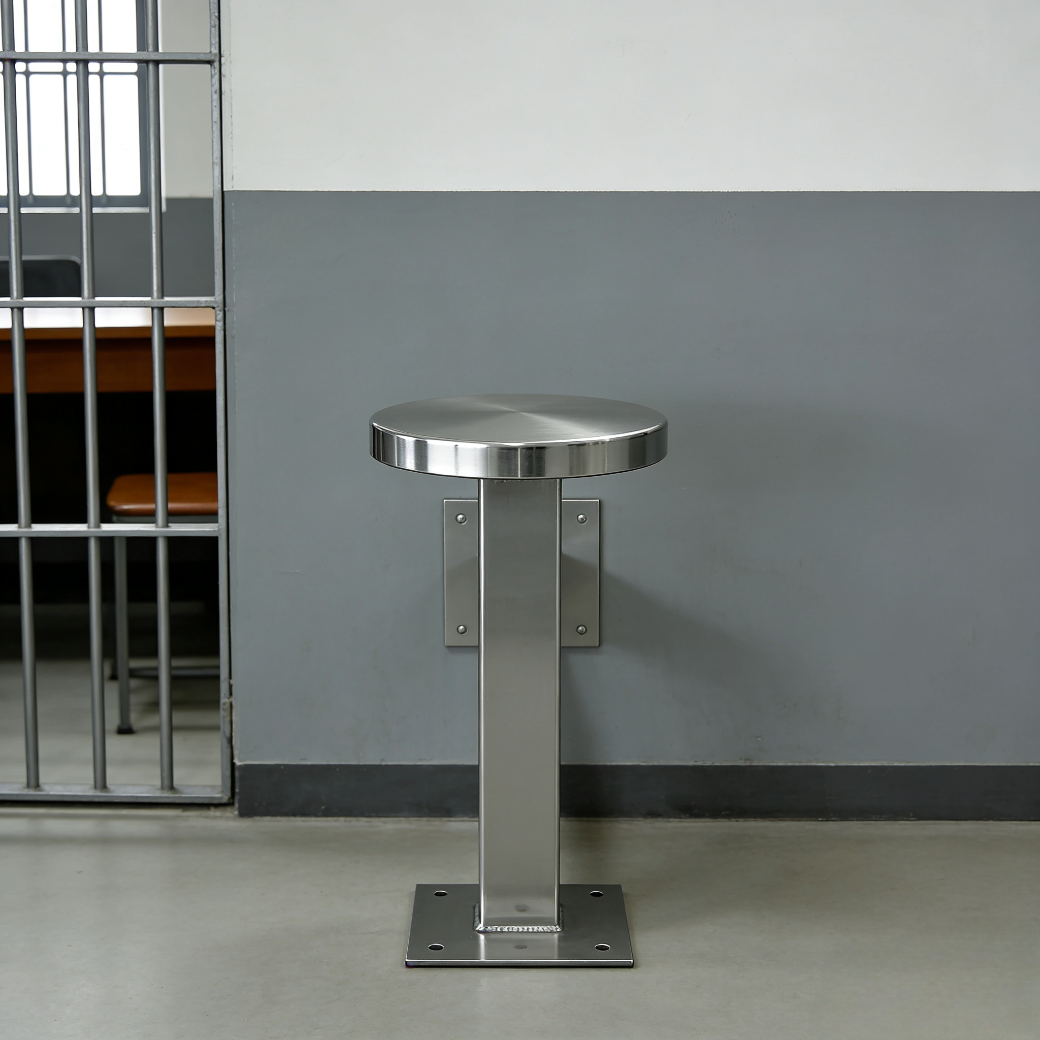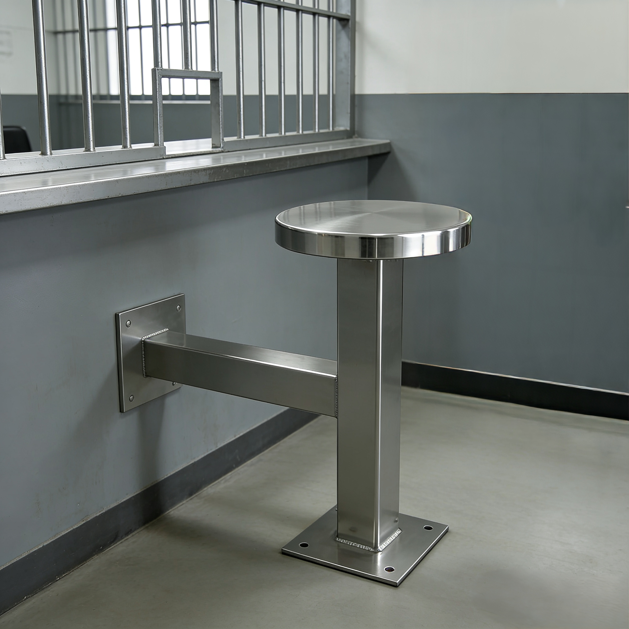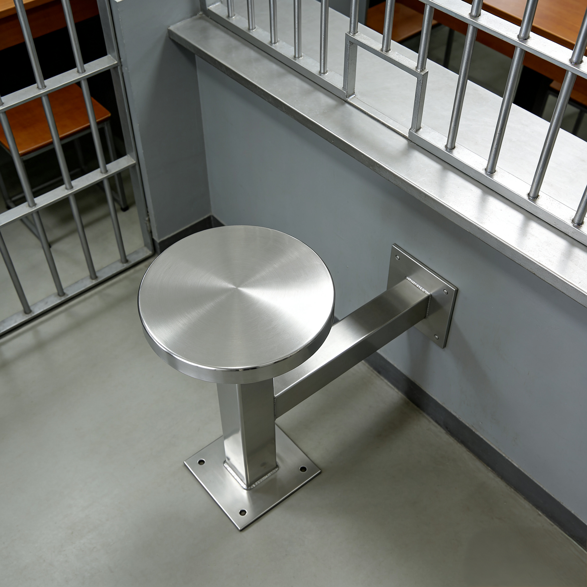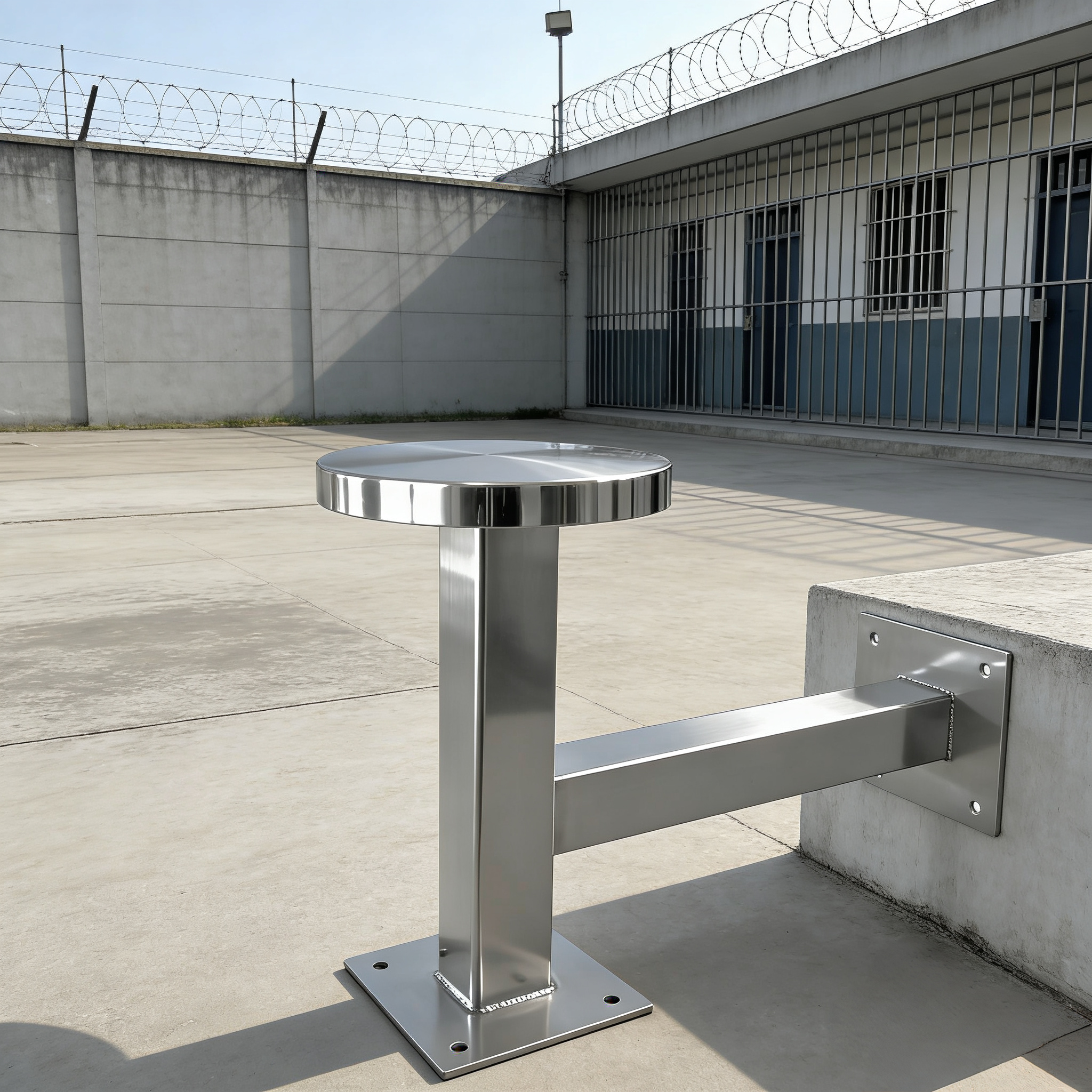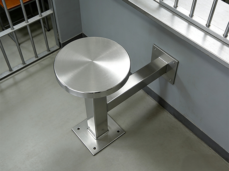 The BC-H8260 Stainless steel wall-mounted prison bench adopts a dual-fixed structure of floor and wall. The square flange at the bottom is firmly fixed to the ground with expansion bolts, and the square brackets on the side are fixed to the wall through the wall flange. It has extremely strong load-bearing capacity and cannot be disassembled or moved, thus eliminating potential safety hazards.