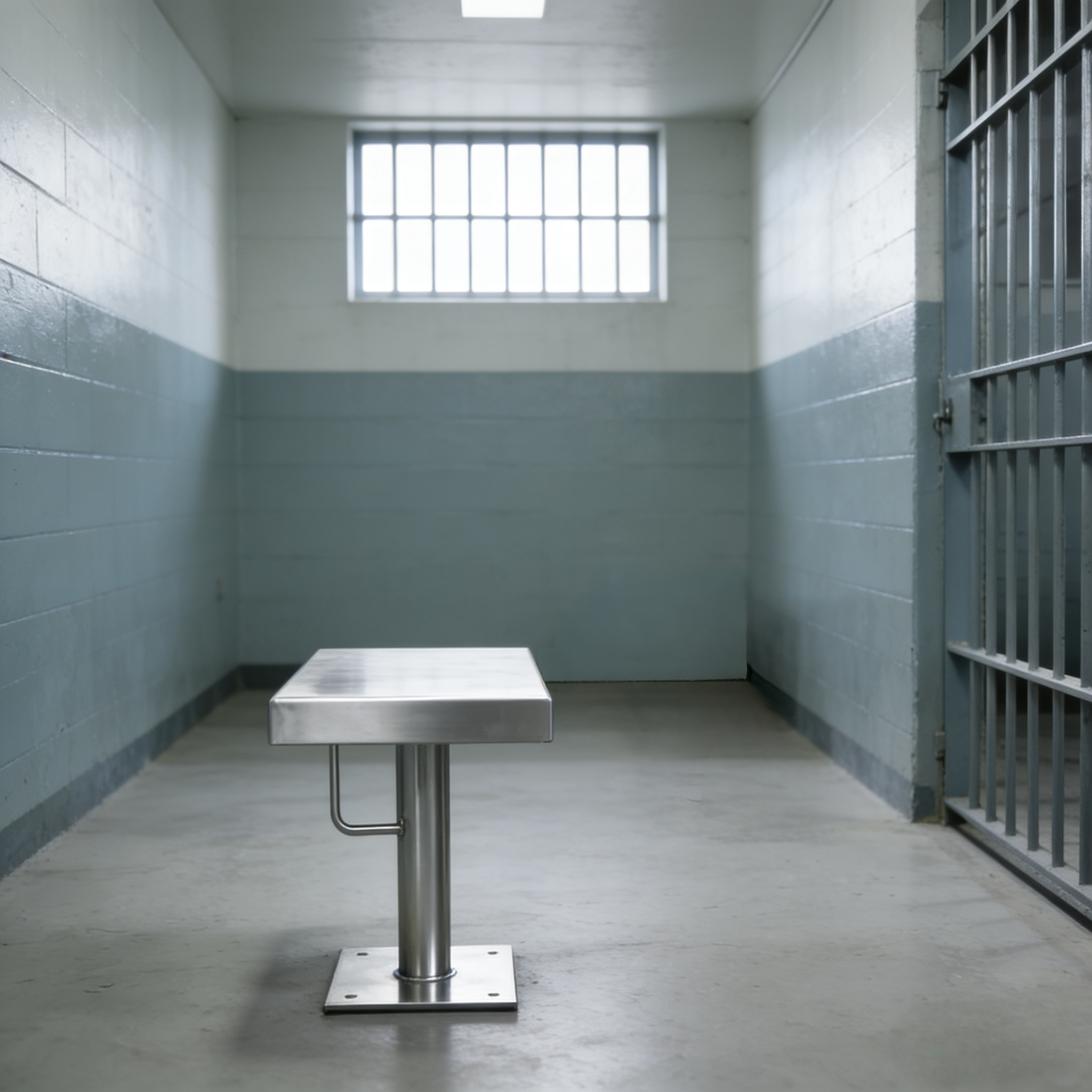 The wall-mounted L-shaped handcuff design is structurally stable and cannot be moved, overturned or disassembled. This prevents the use of furniture to attempt escape or self-harm.