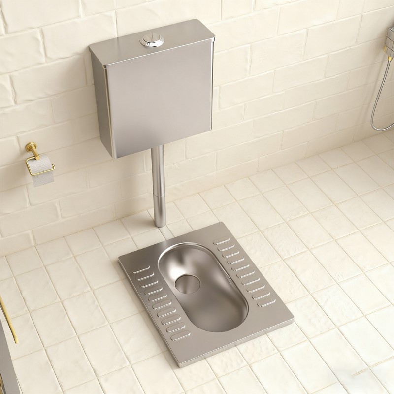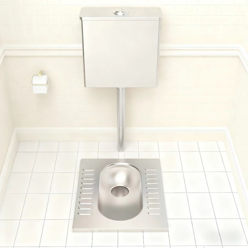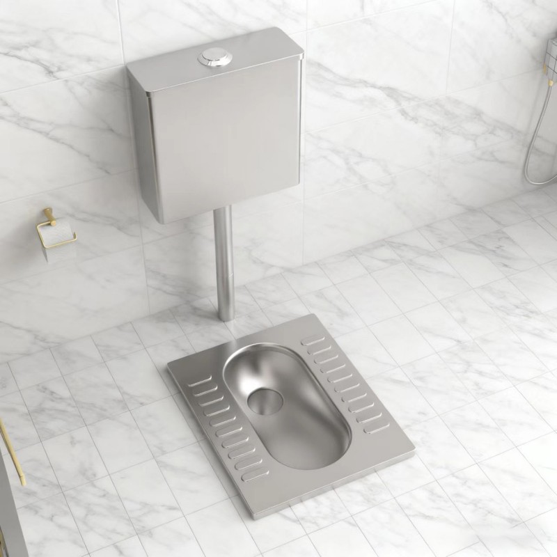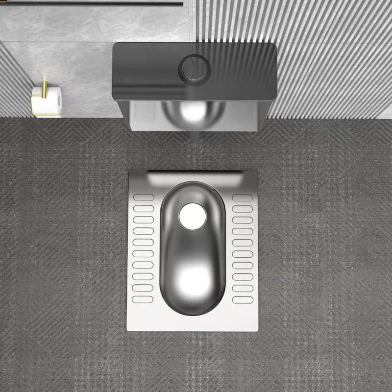The striped anti-slip protrusions on the stainless steel squat toilet form stable friction patterns through horizontal or vertical strip-like protrusions, ensuring a more continuous anti-slip area. They also guide water to drain quickly, balancing anti-slip performance and drainage efficiency.