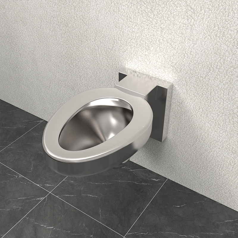 This stainless steel toilet has both the inlet and outlet located inside the wall, requiring reserved inlet and outlet pipes inside the wall to prevent exposed water pipes from leaking outside and prevent criminals from damaging the pipes