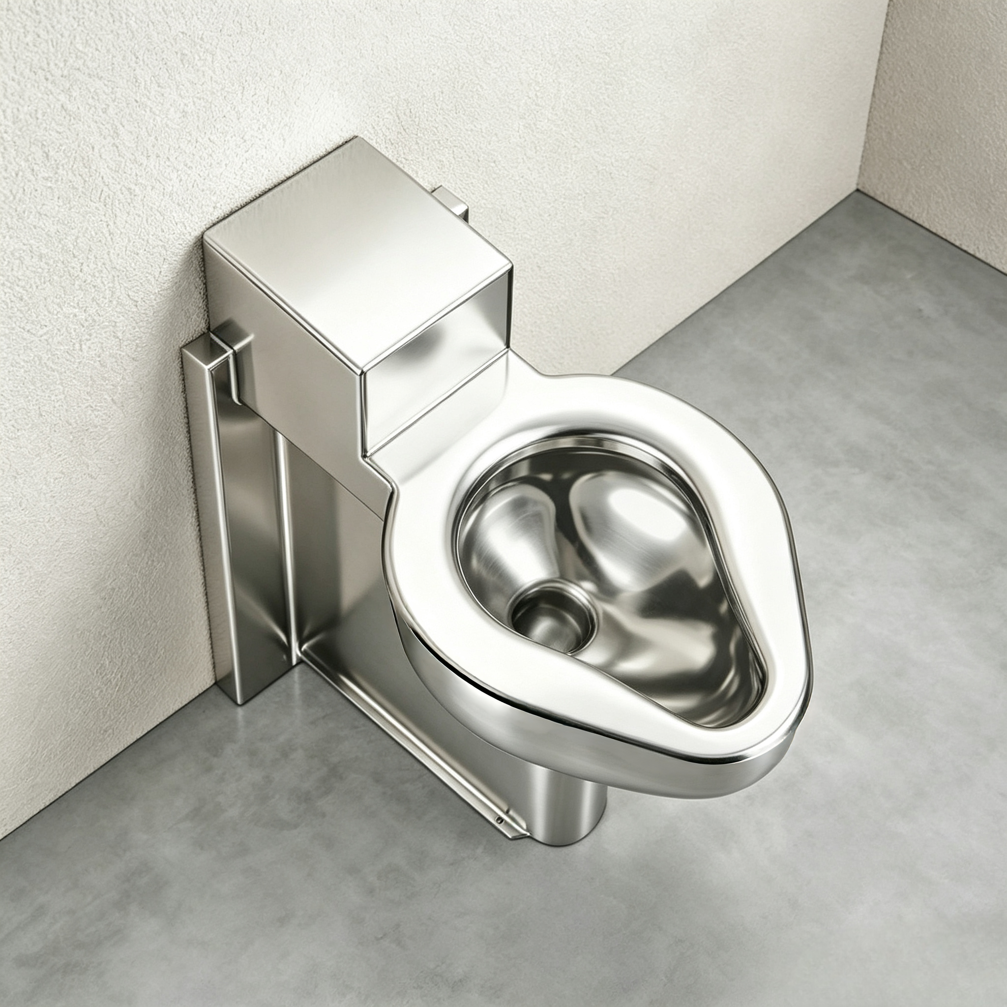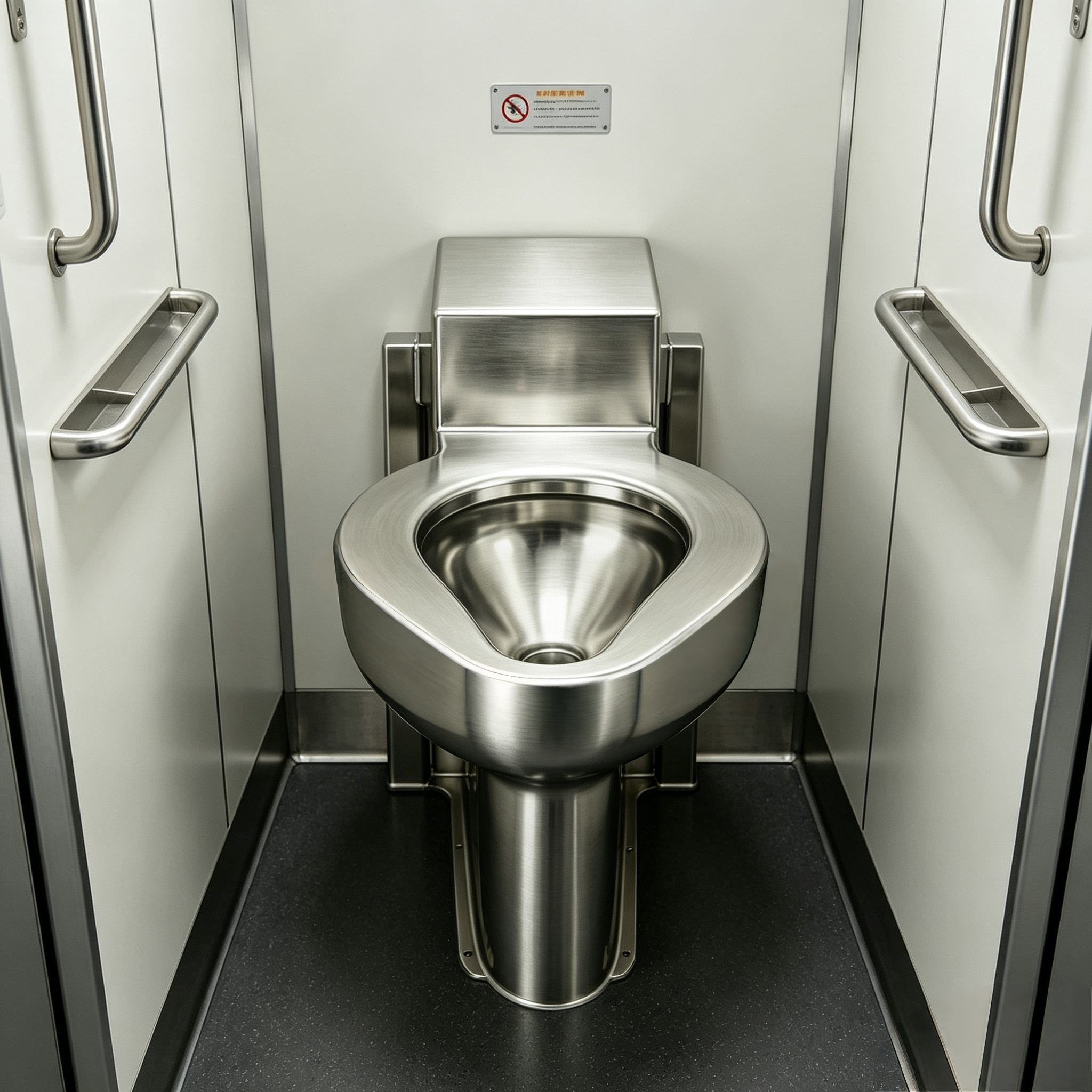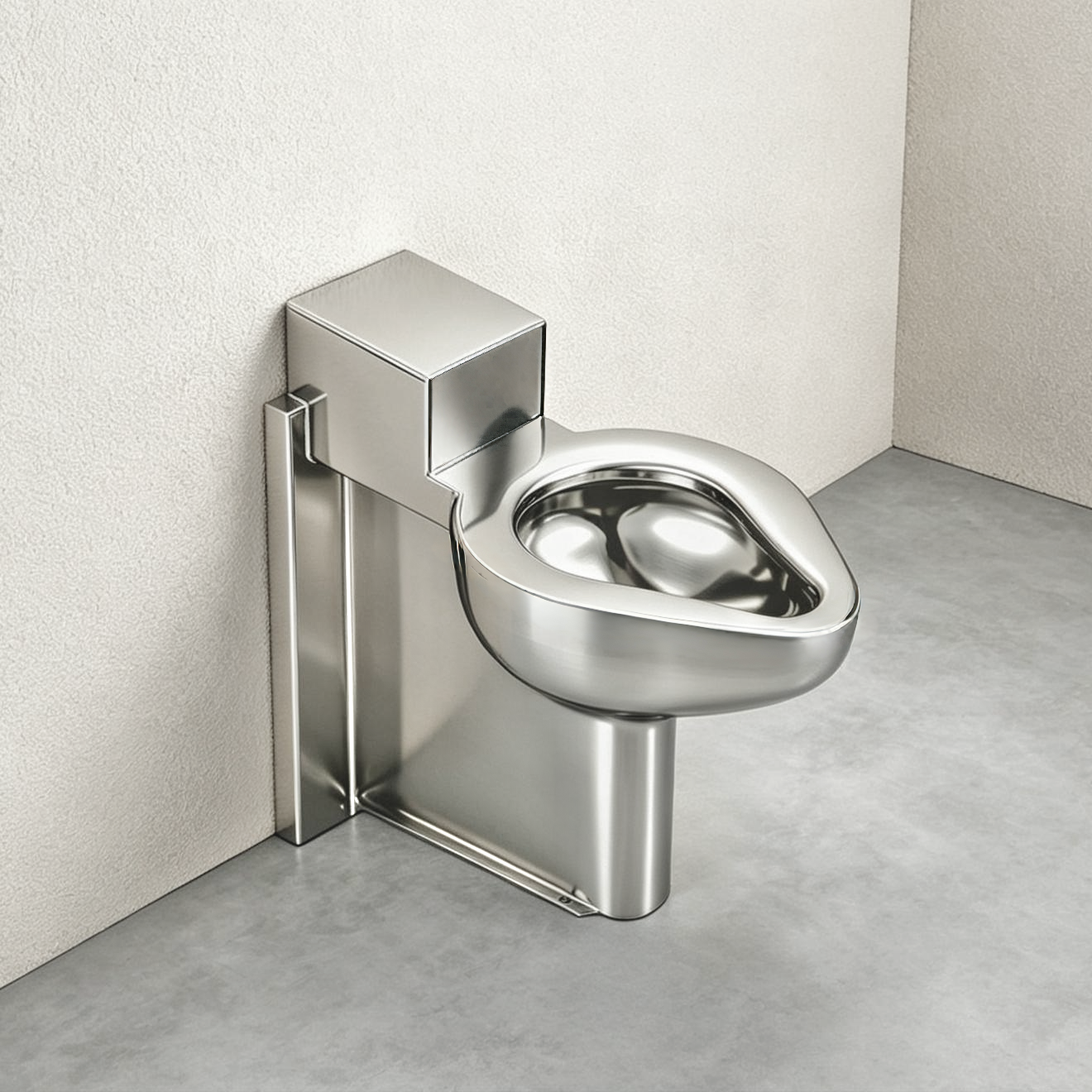 This stainless steel toilet has both the inlet and outlet located inside the wall, requiring reserved inlet and outlet pipes inside the wall to prevent exposed water pipes from leaking outside and prevent criminals from damaging the pipes