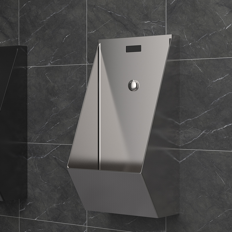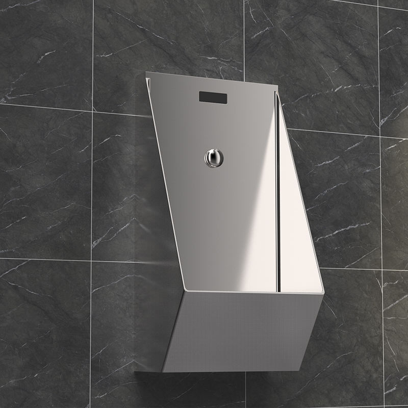 BC-U8451 is a wall mounted stainless steel urinal that adopts an automatic sensing water outlet mode. The sensor senses the human body and automatically discharges water. The inlet is located at the back and the outlet is also located at the back, without any exposed pipes, making it safe and aesthetically pleasing.