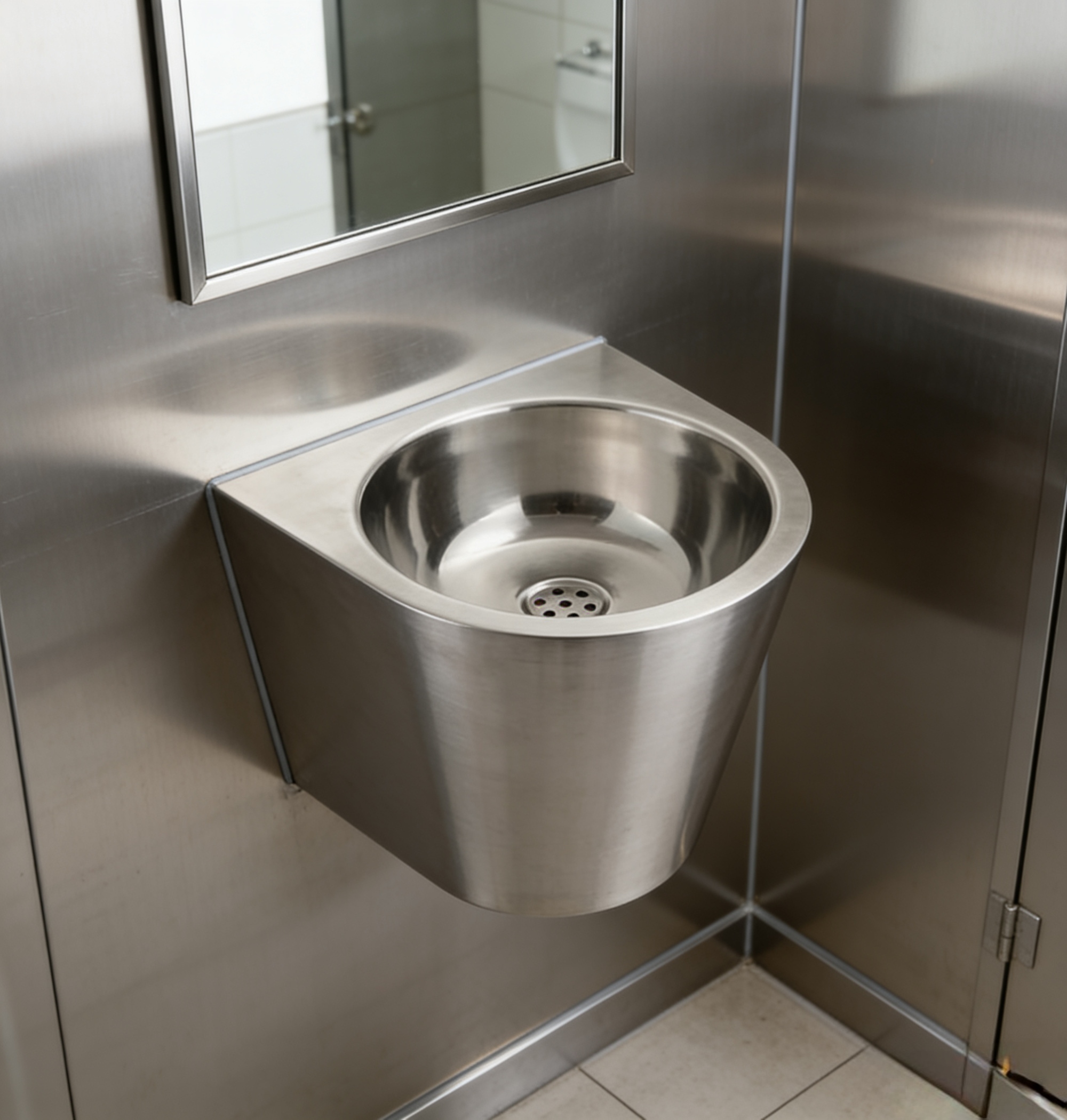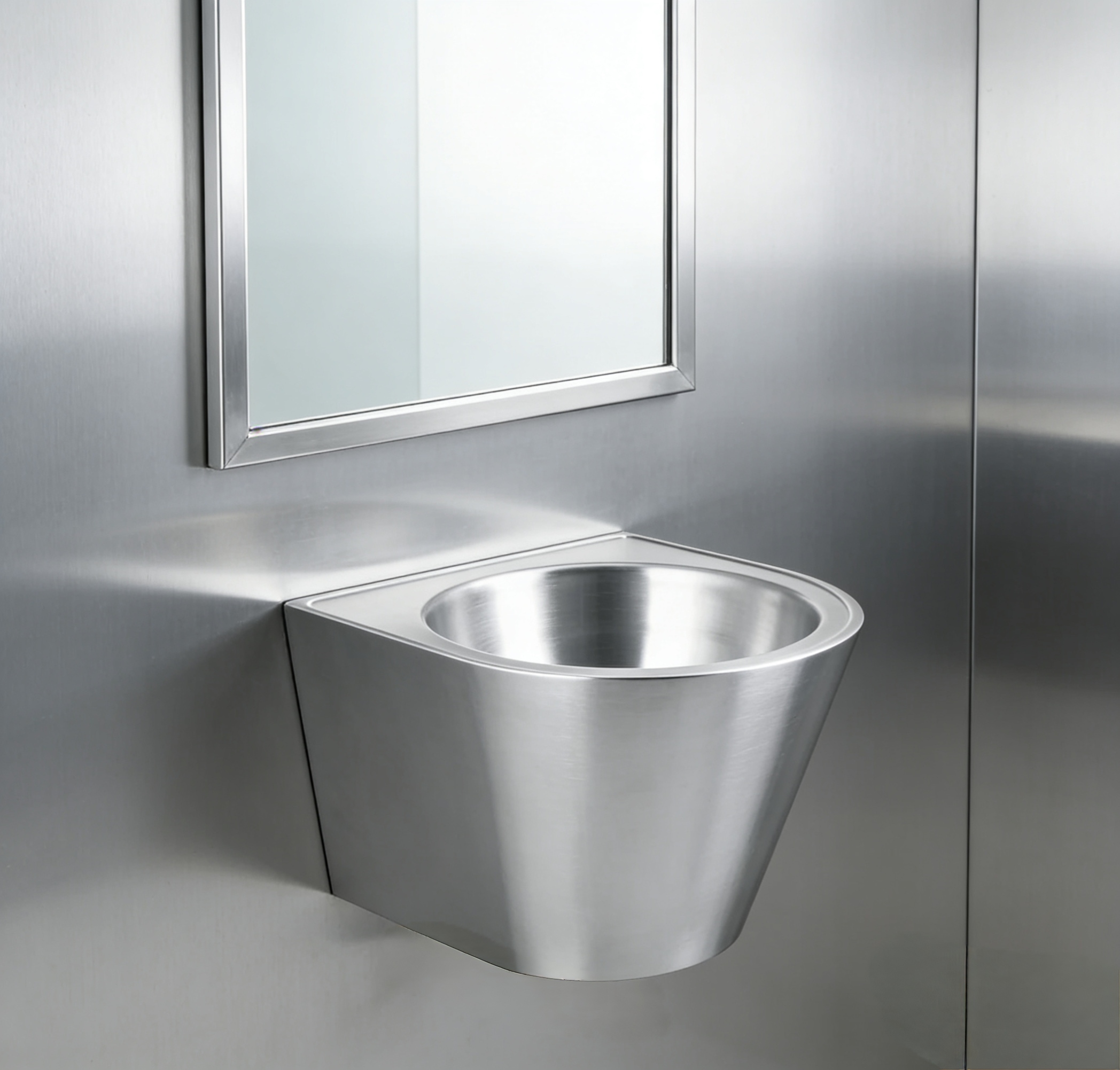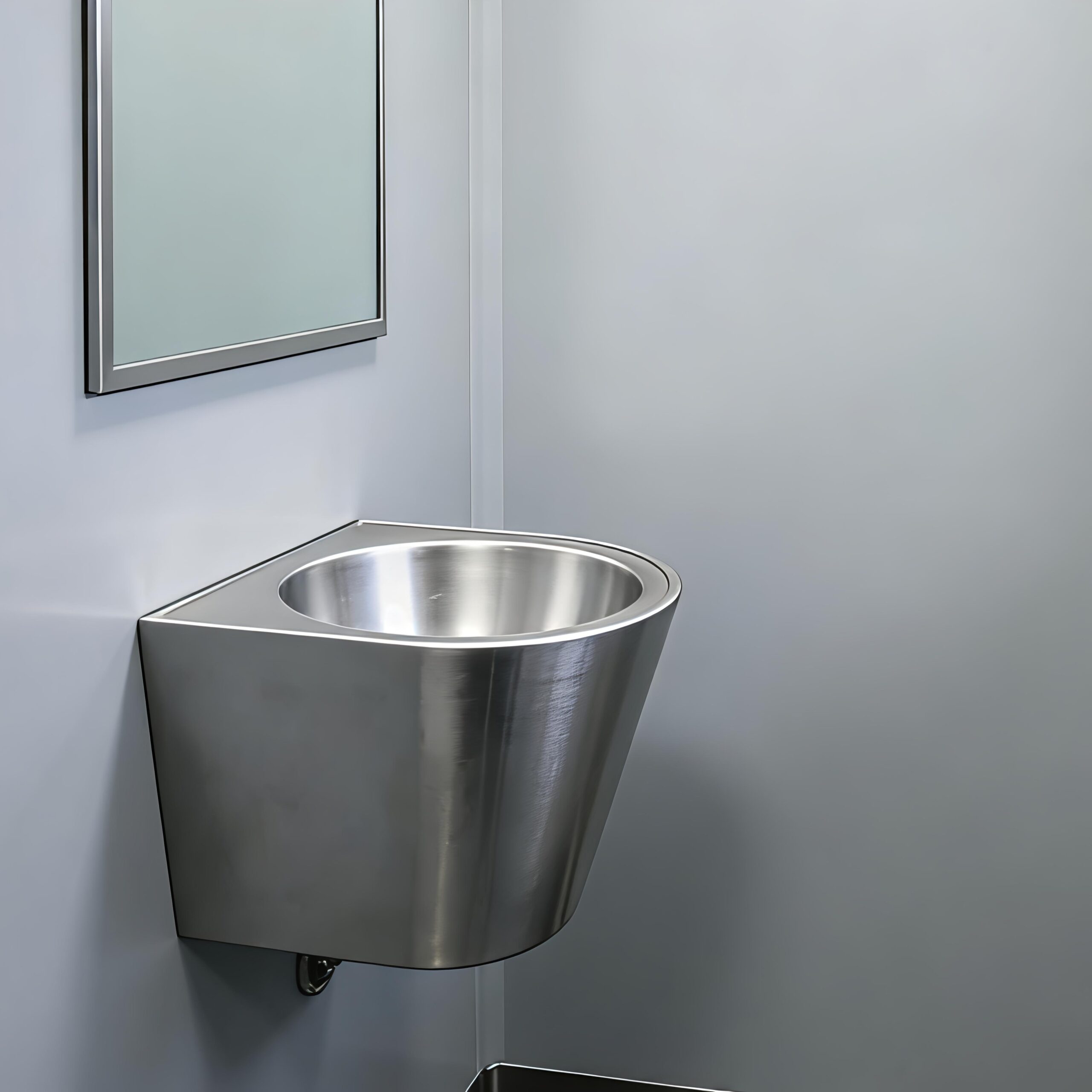 A vandal-proof toilet sink for prisons is made of 304 stainless steel. It features an oval basin, is suitable for wall-mounted installation, is sturdy and durable, has the functions of anti-vandalism, corrosion resistance and rust prevention, and is easy to clean.