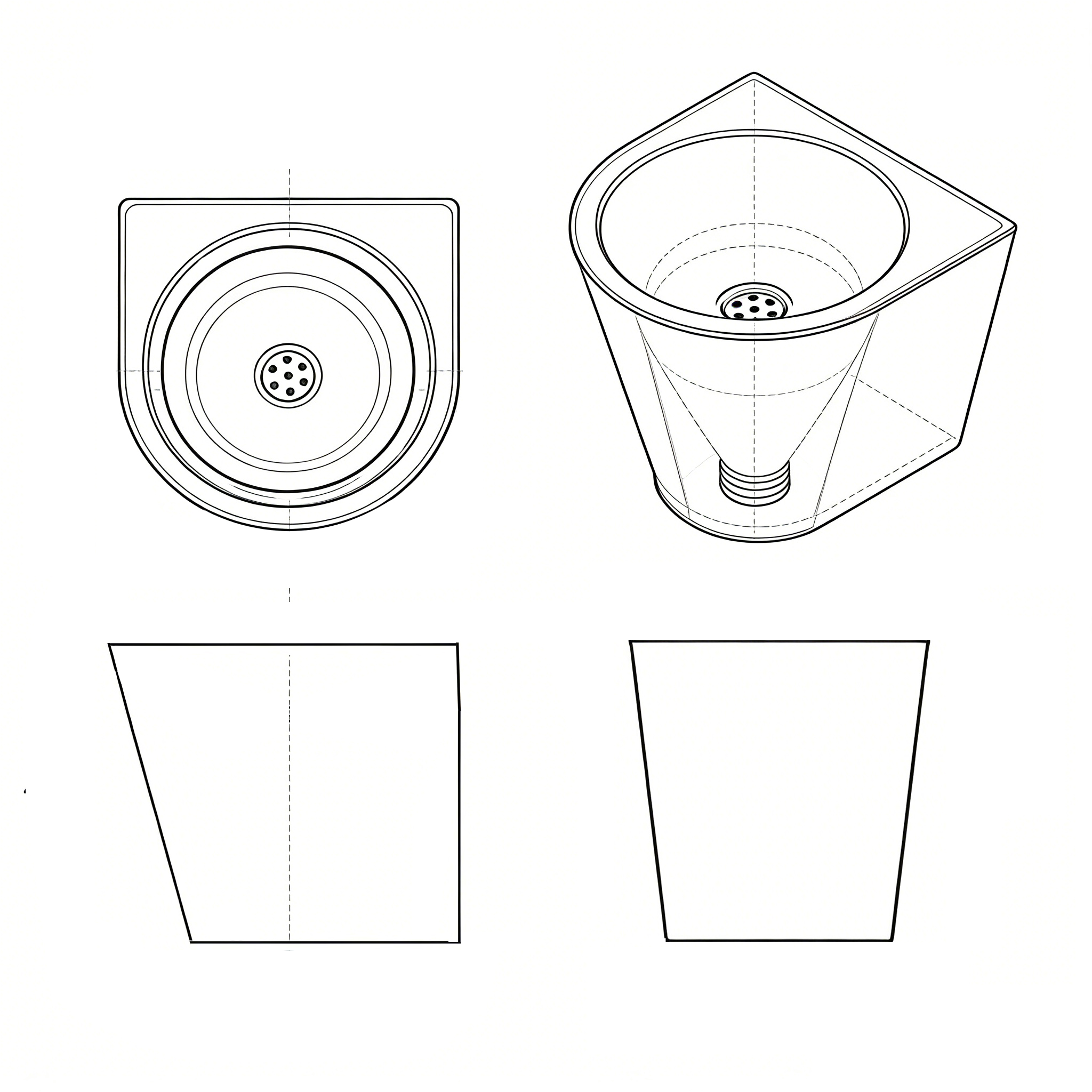 Circular sink, single sink, floor standing, with circular faucet