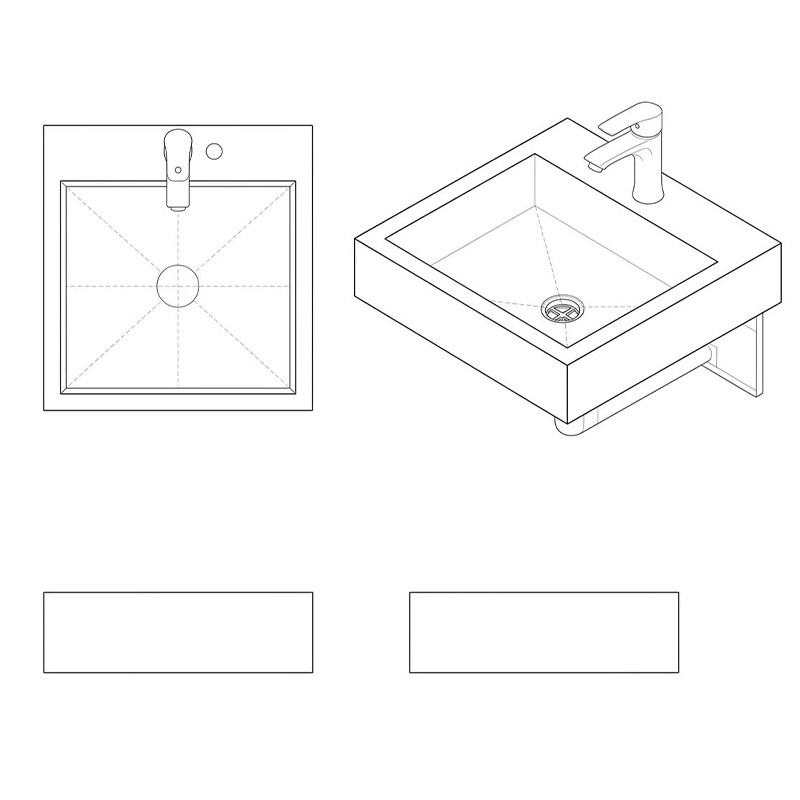Wall mounted installation, rectangular washbasin, single slot, no faucet