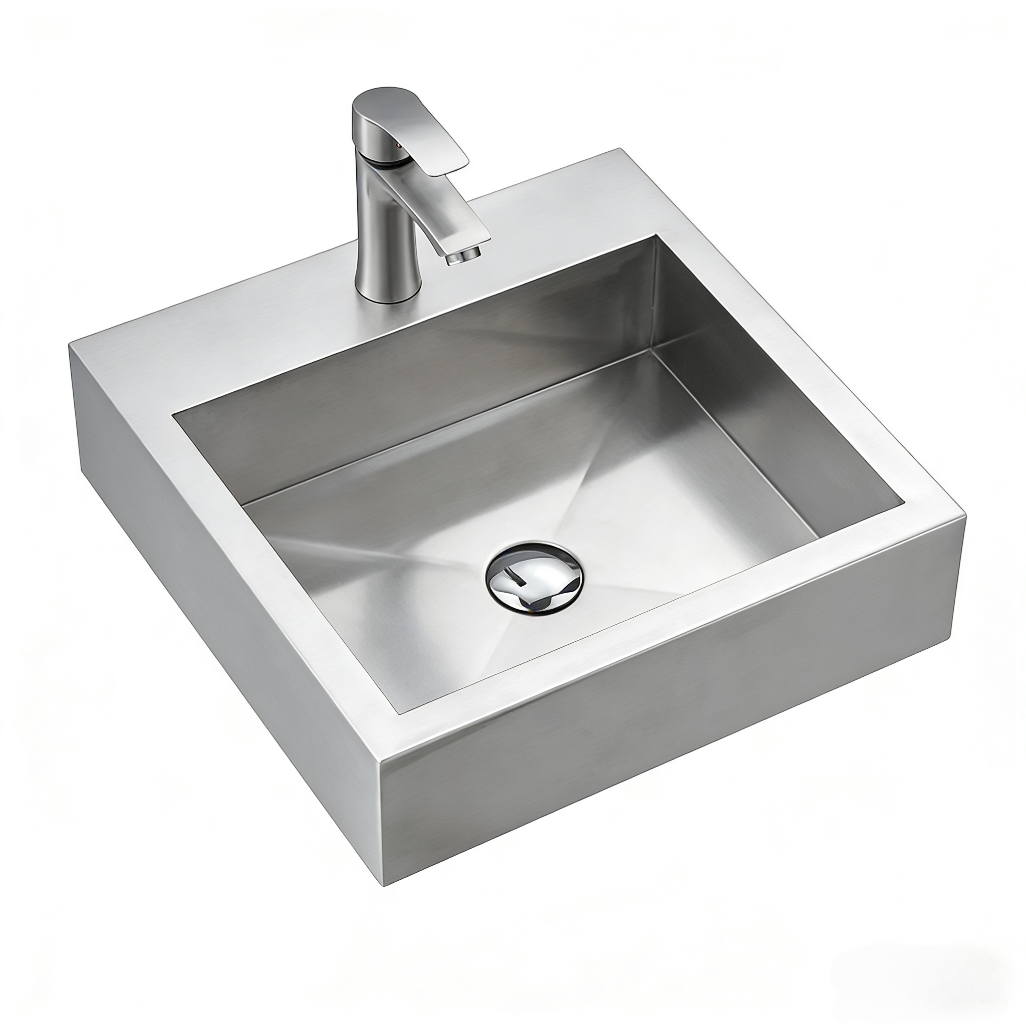 Wall-mounted sink, single basin, square sink, with faucet