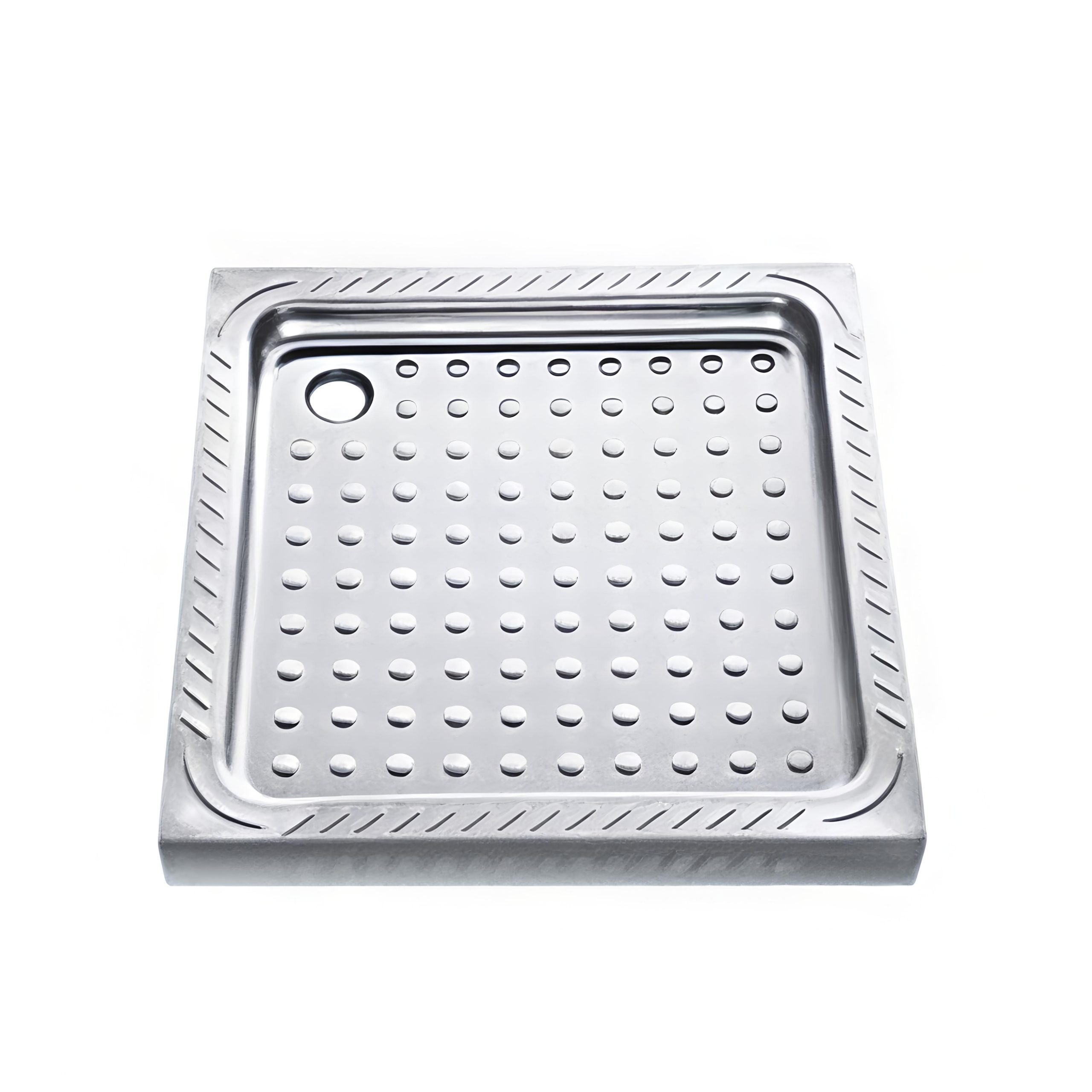 The brushed finish creates a dense textured layer on the metal surface, enhancing surface hardness and reducing scratches from daily foot traffic and cleaning tool friction. This maintains the tray’s structural integrity over time, extending its service life. Enhanced Slip Resistance: The textured finish increases surface friction in humid environments like bathrooms, significantly reducing the risk of inmate slips during showers.